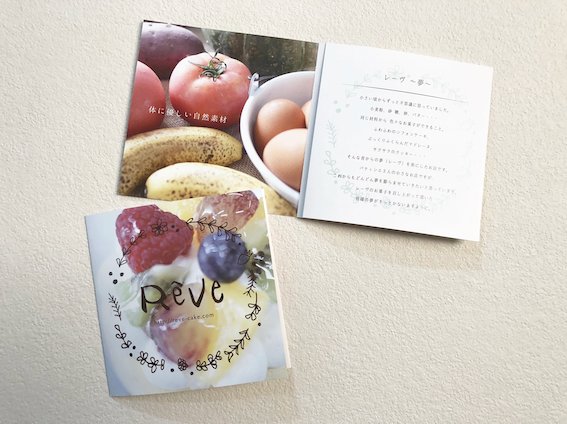 Reve2018年3月3日読了時間: 1分更新日:2025年3月16日 千葉県茂原市にある創作スイーツショップ「Reve レーヴ」さんの パンフレット・チラシのデザインをさせて頂きました。 Reve:http://reve-cake.com